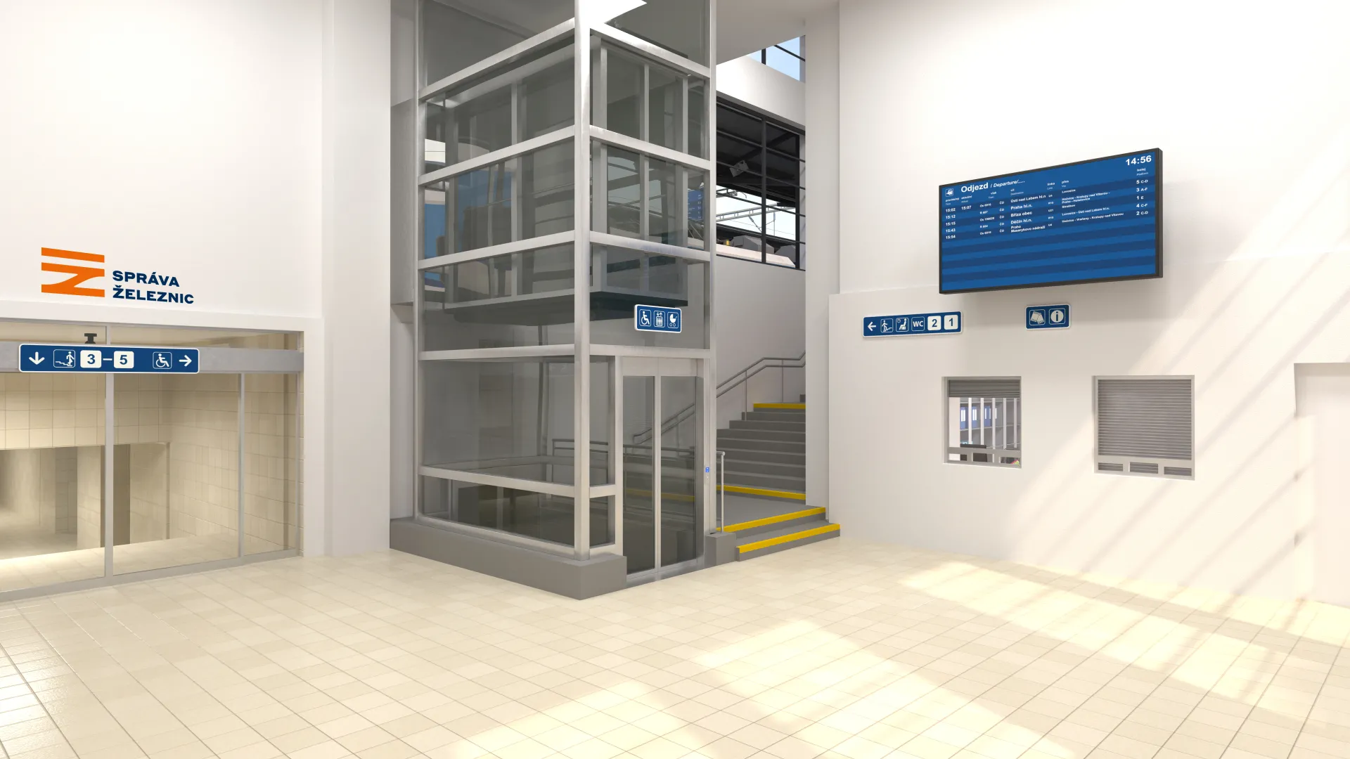 Místo stávajících úrovňových nástupišť bylo zřízeno jednostranné ostrovní nástupiště s přístupem schodištěm a výtahem ze stávajícího podchodu.