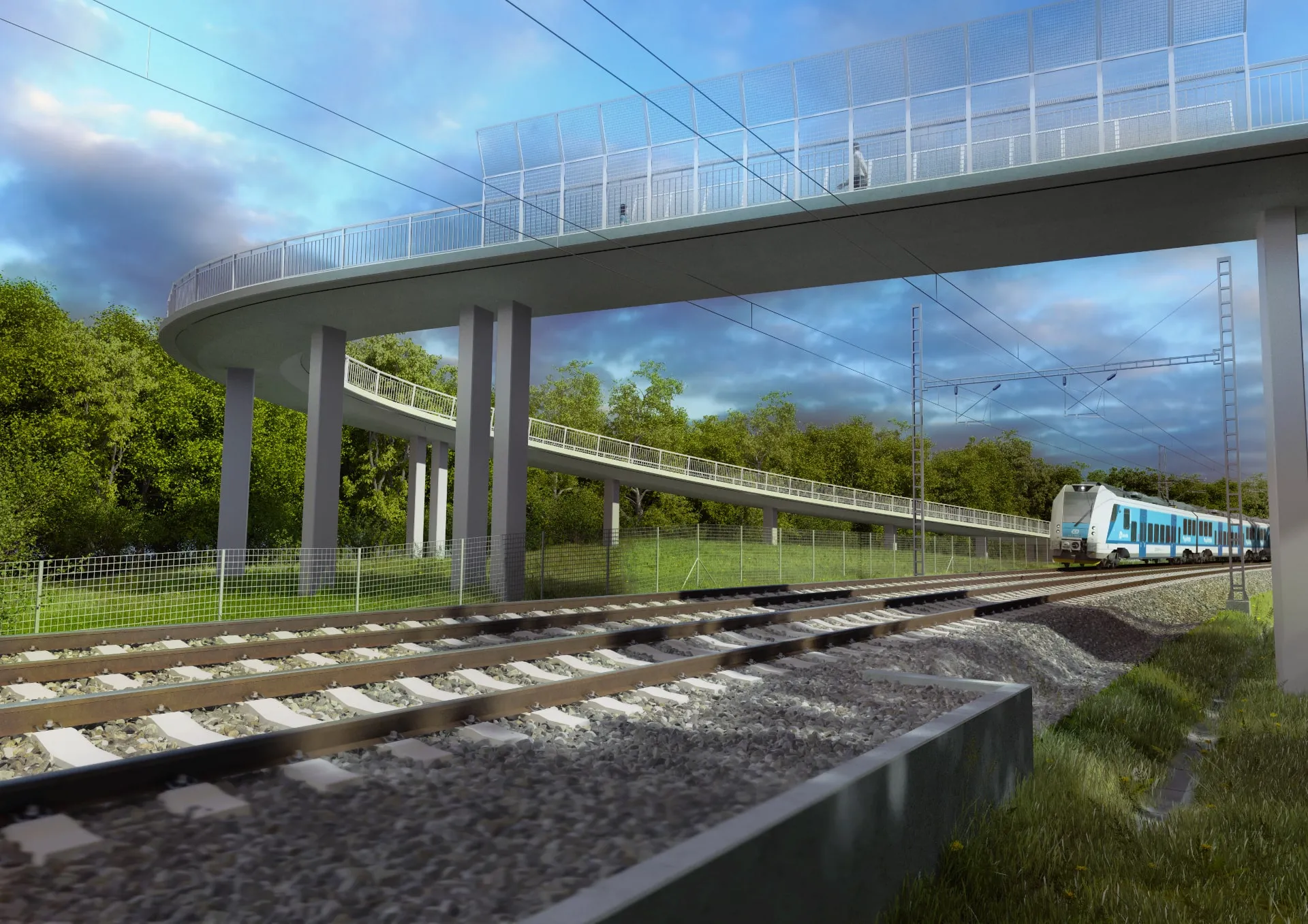 Součástí stavby je mimo řešení rekonstrukce deseti mostů (včetně pěti podchodů), a devíti propustků, výstavba dvou lávek nad tratí i tzv. estakáda Vrskmáň, dvoukolejný most o délce 418 m (délka přemostění 387,5 m) o 13 otvorech a 26 nosných prefabrikovaných konstrukcích typu PSKT 30. Nejvyšší pilíře dosahují výšky 15,5 m